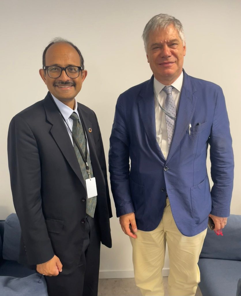 La Conferenza delle Nazioni Unite sugli Oceani UNOC3, in corso di svolgimento a Nizza (FR), è stata l’occasione di un incontro bilaterale tra il direttore di CORILA, Pierpaolo Campostrini, e l’Inviato Speciale del Segretario Generale delle Nazioni Unite, Kamal Kishore, che è a capo dell’ufficio delle Nazioni unite per la riduzione del rischio di disastri, UNDRR. Nell’incontro si è discusso delle diverse opportunità per UNDRR di utilizzare Venezia come luogo di discussione per iniziative che mirino ad aumentare la resilienza delle città costiere. L’esperienza di Venezia, che ha saputo uscire dalla situazione emergenziale causata dai frequenti allagamenti, può fare non solo da esempio, ma da sfondo positivo per l’elaborazione di nuove strategie di adattamento che devono essere studiate ed applicate nelle città costiere di tutto il mondo. CORILA collabora con la Venice Sustainability Foundation- VSF, incaricata dal Comune di Venezia a seguire la partecipazione della Città all’iniziativa di UNDRR “Making Cities Resilient – MCR30”, nella quale è riconosciuta come “Resilience Hub”.