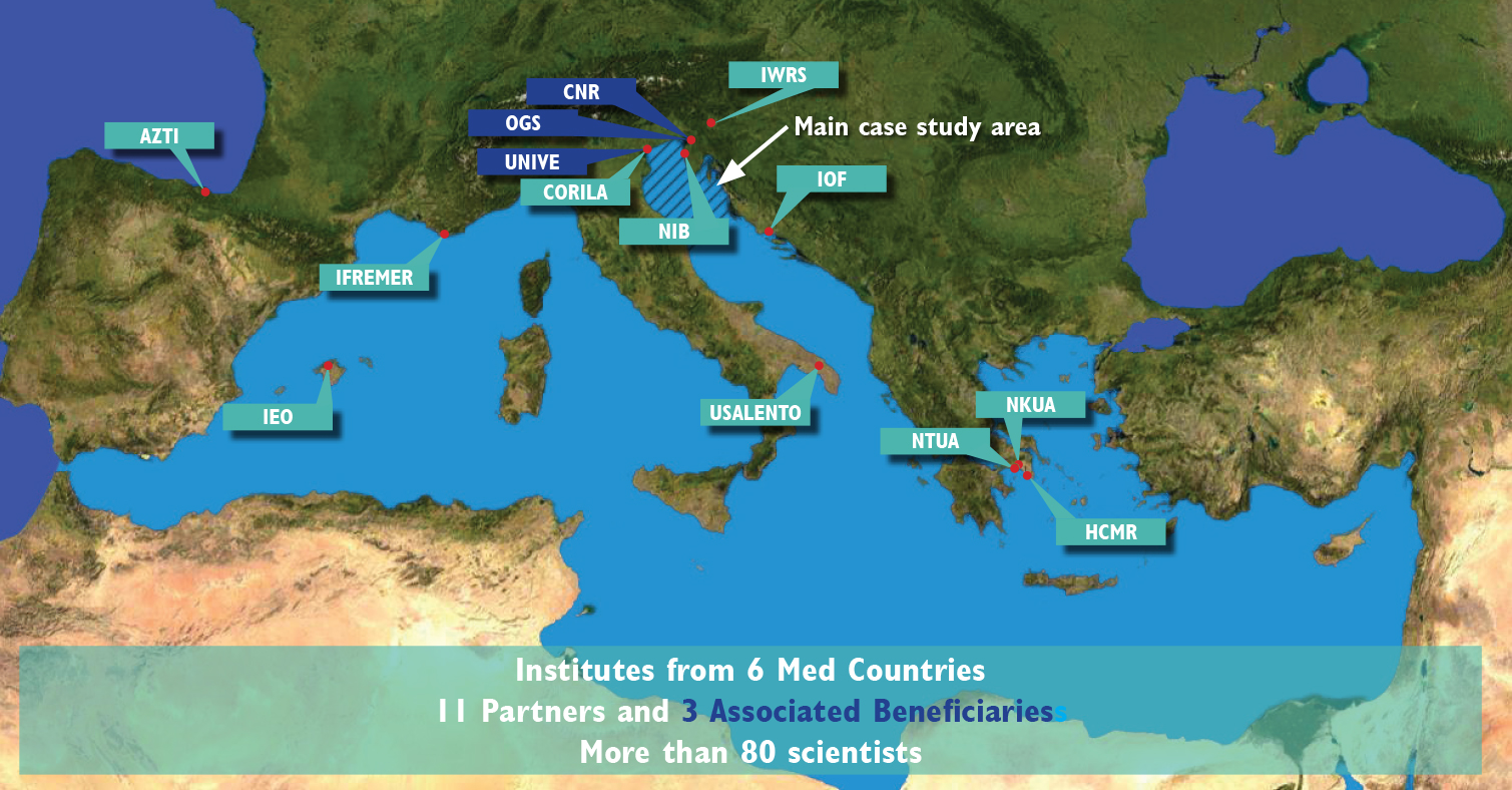 MEDCIS era stato presentato in risposta al 3° bando della Commissione Europea – DG Ambiente riguardante l’attuazione del secondo ciclo della Direttiva quadro sulla strategia per l’ambiente marino (MSFD) in particolare per fornire un aggiornamento coordinato e coerente della determinazione di buono stato ambientale (GES), delle valutazioni iniziali e degli obiettivi ambientali. Tale bando è il seguito dei due precedenti bandi della DG Ambiente che si occupavano di proposte di monitoraggio congiunto e assistenza agli Stati membri per sviluppare Piani d’azione per programmi di monitoraggio integrato, programmi di misure e gestione dei dati. MEDCIS si è concentrato sulla maggior parte dei descrittori a livello mediterraneo (tutte le sottoregioni) con un focus sulla biodiversità (inclusi le specie aliene e l’integrità del fondale marino) i rifiuti marini, il rumore. Sono stati inseriti casi studio nel Mare Adriatico settentrionale al fine di testare le proposte di attuazione della MSFD. In particolare MEDCIS: – ha rivisto e aggiornato la Valutazione 2012, le determinazioni del Buono Stato Ambientale e dei Valori di Soglia, gli Obiettivi Ambientali e gli Indicatori associati a livello di regione/sottoregione marina del Mediterraneo, sviluppando casi di studio per testare le prestazioni degli strumenti di valutazione proposti (es. NEAT); – ha migliorato la gestione e l’accesso ai dati dei programmi di monitoraggio utilizzati nelle valutazioni ai sensi della MSFD e la Direttiva INSPIRE; – ha sviluppato un approccio comune per valutare l’attuazione dei piani di monitoraggio fornendo gli strumenti e i meccanismi necessari per un coerente reporting e misure congiunte o coordinate a livello regionale; – ha creato una rete con UNEP/MAP, autorità competenti per la MSFD, responsabili politici e altre parti interessate, nonché progetti pertinenti per garantire il coordinamento tra regioni/sottoregioni e promuovere la diffusione dei risultati e l’uso diretto dei risultati del progetto in ambienti accessibili modo ai portatori di interessi. 1) fornire gli standard metodologici per la prossima fase della strategia per l’ambiente marino, verso approcci coordinati tra gli Stati membri, rivedendo, confrontando, selezionando e adattando le metodologie esistenti appropriate; 2) concentrarsi sulla cooperazione e sulla standardizzazione regionale/subregionale mediterranea, prendendo in considerazione le sue specificità e raccomandando pertanto approcci adeguati per questa regione. – Catalogo completo delle misure di gestione attuate dagli stati membri del Mediterraneo. – Proposta per ottimizzare i piani di monitoraggio esistenti relativi alla strategia per l’ambiente marino nel Mediterraneo, concentrandosi sulle specie aliene e sui rifiuti marini. Lead Partner :HCMR, Hellenic Centre for Marine Research-Greece IFREMER, Institut Français de Recherche pour l’Exploitation de la Mer -France AZTI, AZTI Fundazioa -Spain USalento ,University of Salento, Italy CORILA (affiliated CNR-ISMAR,OGS, UNIVE), Consorzio per il coordinamento delle ricerche inerenti al sistema lagunare di Venezia – Italy IzVRS, Inštitut za vode Republike Slovenije / Institute for Water of the Republic of Slovenia -Slovenia IEO, Instituto Español de Oceanografía -Spain NIB, National Institute of Biology -Slovenia NKUA, ETHNIKO KAI KAPODISTRIAKO PANEPISTIMIO ATHINON -Greece IOF, Institute of Oceanography and Fisheries -Croatia NTUA, National Technical University of Athens- Greece MEDCIS Partners