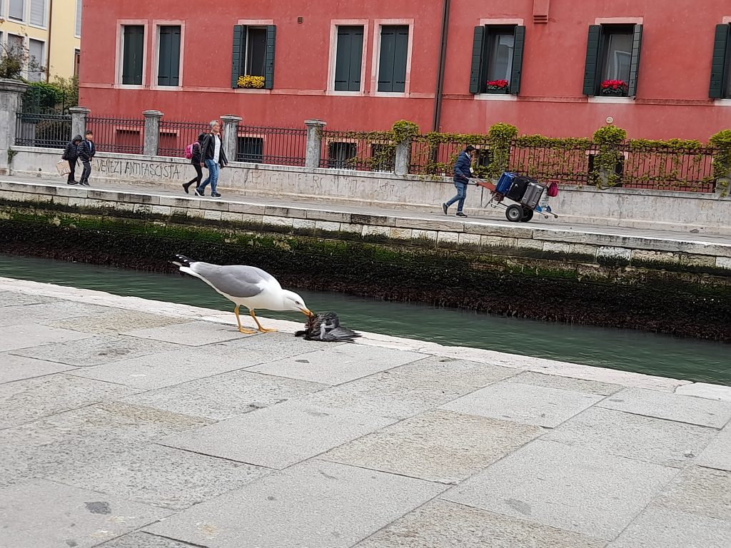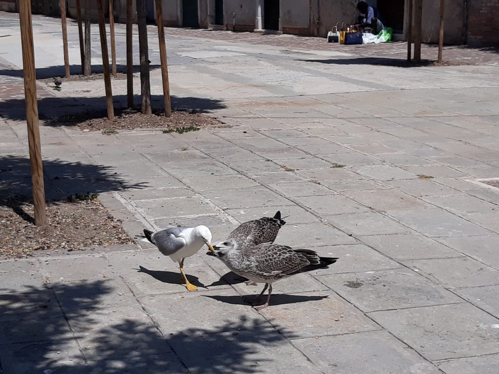 Venezia e i Gabbiani reali. Convivere con la natura urbana. Con la collaborazione di Comune di Venezia e VERITAS Spa. Voce narrante e testi Francesca Coccon. Montaggio e post produzione Enrico Rinaldi. Studio realizzato in collaborazione con Matteo Zucchetta (CNR-ISP). Immagini aeree di Leonardo Mizar. Riprese video gentilmente concesse da MACO film, Max Tycho. Materiale fotografico e videografico gentilmente condiviso da Dario Pelizzon, Linda Sciff, Paola Mazzer. Una produzione CORILA 2025-2026. Per una visualizzazione ottimale impostare il “Settings” del player di YouTube a “Quality 1080p HD”. Il gabbiano reale (Larus michahellis), ha subìto negli ultimi 30-40 anni un’esplosione demografica in gran parte d’Europa e in Nord America. Tale incremento è da attribuirsi alla sua natura opportunistica che lo rende in grado di adattarsi alle risorse alimentari più disponibili e abbondanti e di volare fino a 50 km al giorno per raggiungerle. L’incremento demografico della specie è stato seguito da un’espansione del suo areale riproduttivo con la colonizzazione dell’ambiente urbano. I primi casi di nidificazione urbana sono stati documentati in Regno Unito negli anni ’40, ma a partire dagli anni ‘70 questo fenomeno si è esteso ad altri Paesi Europei. In Italia il primo caso di gabbiani nidificanti urbani è stato registrato a Roma nel 1971 (Pratesi 1975) ed è stato successivamente seguito da diverse altre città costiere, evidenziando una tendenza in rapida espansione (Fraissinet 2015). A Venezia, le prime coppie in atteggiamento riproduttivo sono state osservate nel 2000 e nel 2005 si contavano 24 coppie nidificanti urbane (Soldatini e Mainardi 2006). Negli ultimi 25 anni, tuttavia, il numero di gabbiani reali è cresciuto esponenzialmente, anche a causa dell’ampia disponibilità di rifiuti che venivano lasciati fuori dalle abitazioni ed esercizi in attesa che l’operatore ecologico passasse a ritirarli. Questo ha portato ad una serie di disagi e conflitti con l’uomo. In particolare, i gabbiani rompevano i sacchetti delle immondizie disperdendone il contenuto per la strada e per i canali della città con conseguenze negative sull’igiene e decoro urbano. Per far fronte a questa situazione e limitare le risorse trofiche disponibili per la specie, a partire da ottobre 2016 l’Azienda Municipalizzata Veritas s.p.a. insieme al Comune di Venezia hanno avviato, in via sperimentale, un nuovo modello di raccolta dei rifiuti che ne prevede la consegna diretta agli operatori ecologici, che passano di casa in casa, oppure l’auto conferimento nei punti di stazionamento delle barche di Veritas, ormeggiate in diverse zone della città. Congiuntamente al cambio del sistema di raccolta dei rifiuti, a partire da marzo 2017, è stato avviato un monitoraggio della popolazione di gabbiano reale nel centro storico di Venezia con l’obiettivo di a) studiare gli effetti della nuova politica gestionale sull’abbondanza e distribuzione della specie e b) ottenere una stima aggiornata della popolazione, utile per scopi gestionali. Per il monitoraggio sono state impiegate due tecniche di rilevamento: 1) censimenti per percorsi stradali e 2) censimenti da punti elevati (tra campanili, terrazze e altane private dislocati in posizione strategica nel centro storico). Questi ultimi sono stati pianificati in tre periodi specifici dell’anno: a marzo, all’inizio del periodo riproduttivo, a giugno, nel periodo di picco della stagione riproduttiva e a novembre, nelle fasi iniziali del periodo di svernamento. I risultati hanno rivelato un effetto positivo e statisticamente significativo dei rifiuti sulla presenza e abbondanza di gabbiani reali in città. È stato inoltre evidenziato un calo significativo di entrambe le variabili in seguito all’introduzione del nuovo sistema di raccolta dei rifiuti (Coccon e Fano 2020). La densità e abbondanza di individui e delle coppie riproduttive sono state stimate mediante la tecnica del Distance sampling (Buckland et al. 2001, 2015). Le stime hanno rivelato la presenza di circa 2000 individui e 430 coppie nel giugno 2018 (Coccon et al. 2021), evidenziando un leggero aumento nel giugno 2021, con 520 coppie nidificanti. Le coppie sono risultate maggiormente concentrate nelle zone nevralgiche della città, mentre le aree più periferiche e meno turistiche sono apparse meno attraenti per i gabbiani. Nel 2022, Veritas e il Comune di Venezia hanno commissionato a CORILA la realizzazione di un “Vademecum sul gabbiano reale a Venezia” sulle possibili strategie da attuare per migliorare la convivenza con i gabbiani reali e limitare gli effetti legati alla presenza della specie in città. Partendo da un’analisi della letteratura esistente sul tema, a livello nazionale e internazionale, e grazie alla conoscenza acquisita nel corso del monitoraggio, il Vademecum propone un insieme di best practice per la GESTIONE ECOSISTEMICA INTEGRATA DELLA SPECIE nel contesto specifico e unico della città di Venezia. L’obiettivo iniziale del progetto è stato quello di studiare gli effetti della nuova politica gestionale di raccolta dei rifiuti sull’abbondanza e distribuzione della specie ed ottenere una stima aggiornata della popolazione, utile per scopi gestionali. L’obiettivo del Vademecum, pubblicato a novembre 2023, è quello di informare in primis gli amministratori comunali sulle buone pratiche da introdurre per ottenere la miglior convivenza possibile con questa specie selvatica urbana ma anche i cittadini, visitatori e turisti sui comportamenti corretti da tenere nei confronti della specie. L’obiettivo di questo documento è quindi quello di sensibilizzare al tema ed informare sul set di azioni da attuare nel centro storico di Venezia e isole per limitari gli effetti legati alla presenza dei gabbiani reali. Veritas, Comune di Venezia, CORILA. Intervista radiofonica su Radio Popolare del 3 Giugno 2025 nel corso della trasmissione “Considera l’armadi