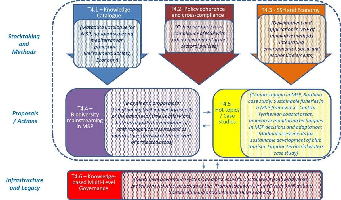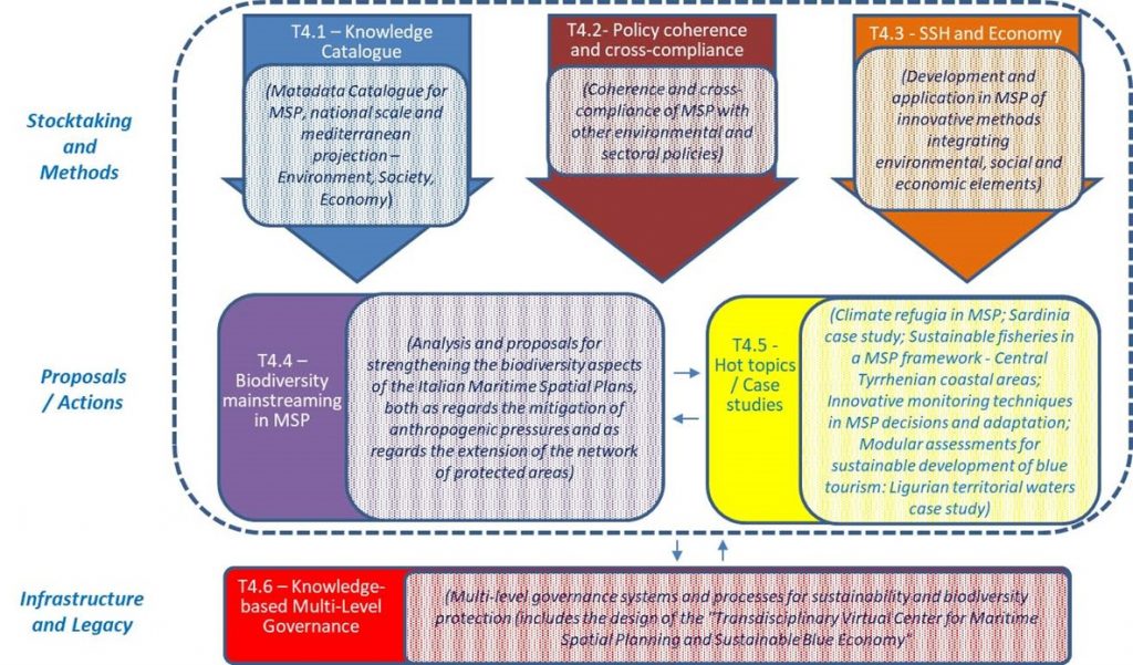 Il Centro Nazionale per la biodiversità (National Biodiversity Future Center, NBFC), finanziato coi fondi del PNRR, nasce con l’ambizioso obiettivo di costituire una comunità multidisciplinare permanente a livello nazionale, dedicata allo studio della biodiversità italiana e allo sviluppo e raccolta di conoscenze materiali e immateriali, utile a costruire una solida base scientifica per: Il Centro, organizzato secondo un modello ad “Hub e Spokes” con l’Hub coordinato dal CNR, è composto complessivamente di otto Nodi, ognuno dei quali esplora tematiche di ricerca specifiche e sviluppa diverse attività integrate fra loro. Nell’ambito del Nodo 2 del Centro “Solutions to reverse marine biodiversity loss and manage marine resources sustainably”, finalizzato ad attuare azioni concrete per ridurre la pressione antropica sulla biodiversità marina del Mediterraneo, sviluppando e sperimentando soluzioni per contrastare la perdita di biodiversità dovuta ad attività come la pesca, la navigazione e il turismo, l’attività A4 “Biodiversity mainstreaming in Maritime Spatial Planning (MSP4BIODIVERSITY)” si propone, attraverso la Pianificazione dello Spazio Marittimo (PSM), di favorire uno sviluppo sostenibile e duraturo dell’economia del mare, salvaguardando contestualmente la biodiversità e gli ecosistemi marini, così come espressamente richiesto dal quadro di riferimento internazionale in materia di uso sostenibile dei mari e tutela della biodiversità negli spazi marini, tra cui la missione di Horizon Europe “Starfish Mission 2030: Restore our Ocean and Waters”, gli “Aichi Biodiversity Targets” della decima COP ed in particolare l’obiettivo 11, i 17 Obiettivi di Sviluppo Sostenibile OSS (Sustainable Development Goals, SDGs) dell’Agenda 2030 ed in particolare l’obiettivo 14 “Conservare e utilizzare in modo sostenibile gli oceani, i mari e le risorse marine”, la direttiva quadro sulla strategia marina (MSFD) e la “Strategia sulla biodiversità per il 2030”. Il riferimento spaziale primario per l’implementazione dell’attività A4 è rappresentato dalle acque marine italiane, ripartite nelle tre aree marittime oggetto dei Piani nazionali in fase di finalizzazione (Adriatico, Ionio – Mediterraneo centrale, Tirreno – Mediterraneo occidentale), con una necessaria proiezione sul Mar Mediterraneo nella sua interezza per tenere conto della complessità degli aspetti ecologici, socioeconomici e geopolitici coinvolti nel processo PSM. Il progetto si propone di: Le attività di progetto sono attualmente in corso. Coordinamento: CNR ISMAR. Pillole di Conoscenza Per una ottimale visualizzazione si consiglia l’impostazione di “Quality 720p” sulle impostazioni di YouTube. Pillola 01 – Introduzione Pillola 02 – Politiche e strategie ambientali Pillola 03 – Biodiversità e interazione uomo-ambiente Pillola 04 – Il processo pianificatorio in Europa e in Italia Pillola 05 – Comunicazione scientifica: Conoscenza e dati Pillola 06 – Ocean Literacy Workshop: “PIANIFICAZIONE SPAZIALE MARITTIMA IN ITALIA: AZIONI, SFIDE E OPPORTUNITÀ”. Pierpaolo Campostrini (CORILA). I Piani Spaziali Marittimi in Italia Laurence Martin (Federazione del Mare). Il ruolo della Federazione del Mare nell’attuazione della Pianificazione dello Spazio Marittimo in Italia Giuseppe Aulicino (Direzione marittima Campania). I sistemi di monitoraggio del traffico marittimo e di rapportazione navale, di dominio della Guardia Costiera Italiana. Simonetta Fraschetti (Università di Napoli). Pianificazione spaziale marittima, conservazione e marine restoration: le sfide del futuro. Emiliano Ramieri (CNR-ISMAR). MSP4BIODIVERISITY: sviluppo condiviso e analisi partecipata di scenari di gestione dello spazio marino. Folco Soffietti (IUAV). Buone pratiche e linee guida per supportare il processo di Governance Multilivello nel contesto della PSM in Italia. Francesca Coccon, MaddalenaMasiero (CORILA). Il Centro Transdisciplinare per la Pianificazione dello Spazio Marittimo e l’Economia Blu sostenibile: un’opportunità concreta per la PSM in Italia. Corso “INTERPRETARE E UTILIZZARE I PIANI DI GESTIONE DELLO SPAZIO MARITTIMO: STRUMENTI TEORICI, TECNICI E PRATICI PER LE AMMINISTRAZIONI PUBBLICHE”, attività sperimentale sviluppata nell’ambito del progetto, tenutasi il 24 e il 25 settembre 2025. Giornata 1. 24 settembre 2025. Giornata 2. 25 settembre 2025.