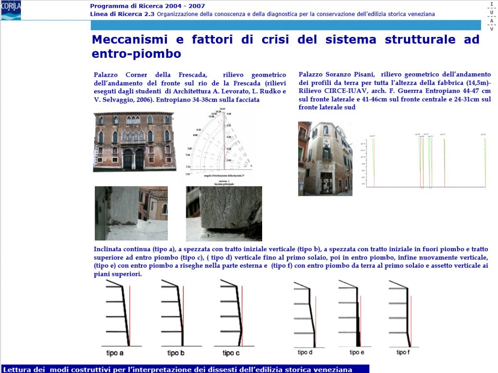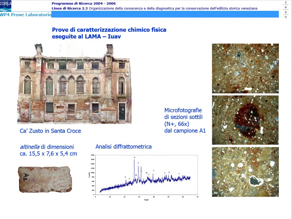 Linea 2.3. Metodologie e tecnologie per il restauro e la conservazione degli edifici veneziani