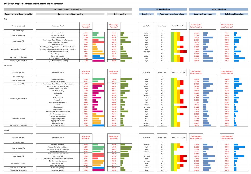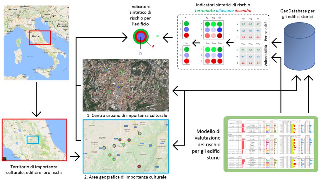 - Un modello di analisi del rischio degli edifici storici per gli eventi terremoto, incendio, inondazione.