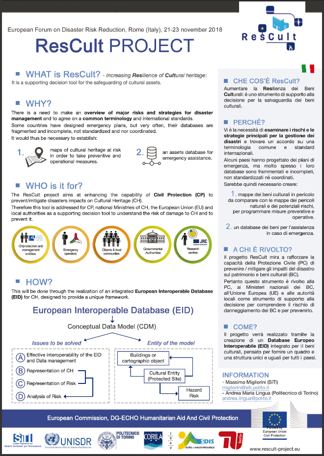 - Titolo del progetto: ResCult – Un Database Europeo Interoperabile per supportare la Protezione Civile nella salvaguardia del Patrimonio Culturale
